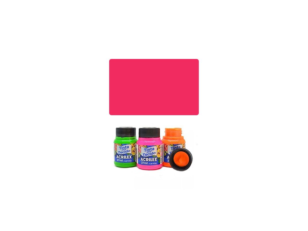 ACR Farba na textil 37ml, Fluorescent Pink 107. Vysokokvalitná farba na bledý aj tmavý textil. Nanáša sa štetcom, špongiou alebo gumovou pečiatkou. Pred použitím pretrepať. Farby sú navzájom miešateľné. Vhodné len na 100% bavlnu, nepoužívať na syntetické a škrobené textílie. Pred aplikáciou musí byť textil predpraný a úplne suchý. Možno prať až po 72 hodinách po aplikácii. Po zaschnutí sú farby vodeodolné a netreba ich fixovať žehlením.Dodatočné parametre