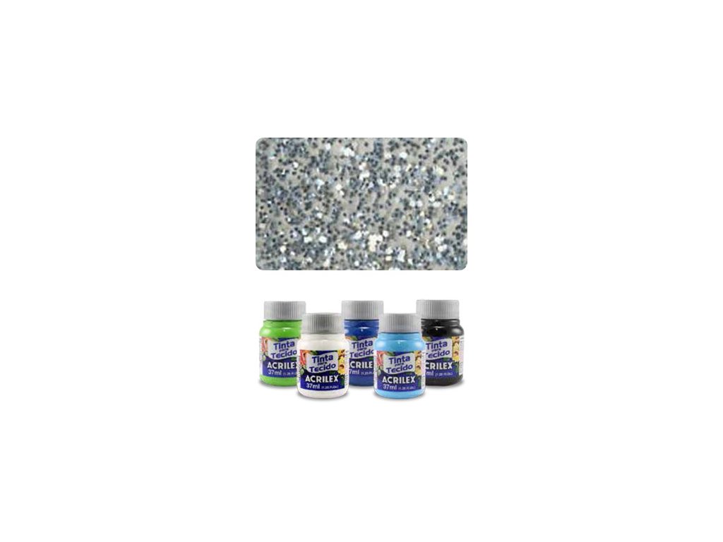 ACR Farba na textil 37ml, Glitter Silver. Vysokokvalitná farba na bledý aj tmavý textil. Nanáša sa štetcom, špongiou alebo gumovou pečiatkou. Pred použitím pretrepať. Farby sú navzájom miešateľné. Vhodné len na 100% bavlnu, nepoužívať na syntetické a škrobené textílie. Pred aplikáciou musí byť textil predpraný a úplne suchý. Možno prať až po 72 hodinách po aplikácii. Po zaschnutí sú farby vodeodolné a netreba ich fixovať žehlením.Dodatočné parametre