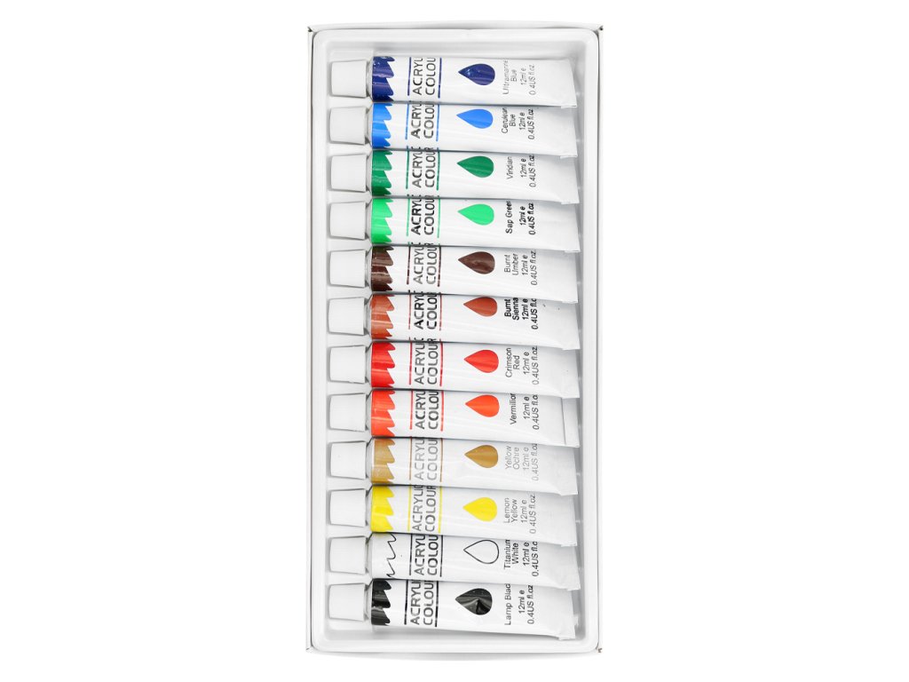 Akrylové farby v jasných odtieňoch, riediteľné vodou, s dobrou krycou schopnosťou. Farby možno aplikovať na všetky bežné podklady ako je papier, lepenka, plátno. Sada obsahuje 12 farebných odtieňov v tubách o objeme 12ml, uložených v papierovej krabičke. Kvalitné, cenovo dostupné farby, ktoré firma JUNIOR ponúka pod vlastnou značkou. Rozmer balenia: 10,5x25 cm.Dodatočné parametre
