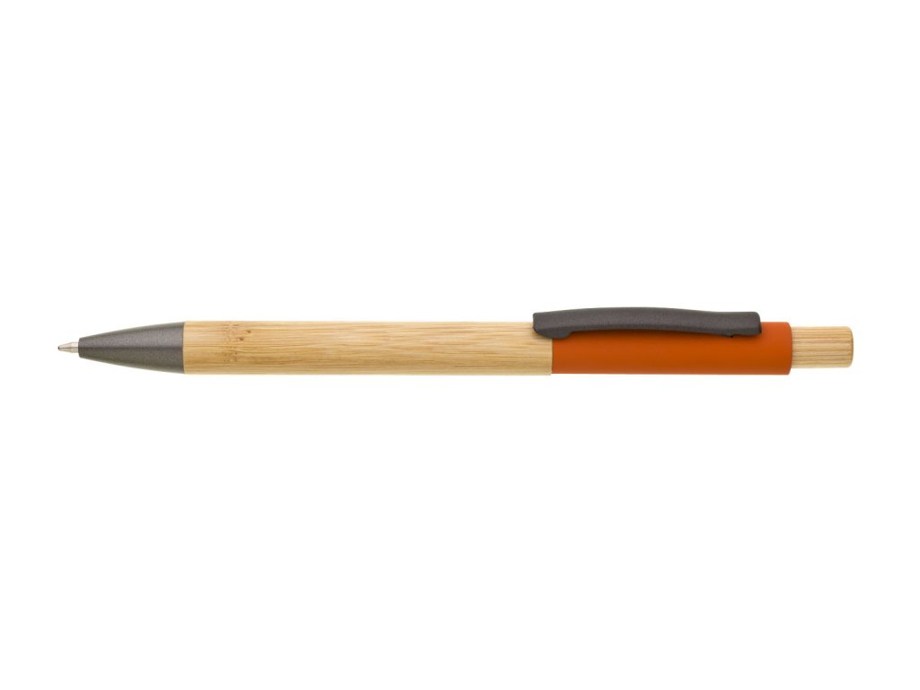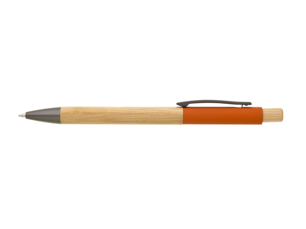 Bambusové pero s oranžovou hliníkovou časťou pod klipom, ideálnou pre značenie laserem. Modrá náplň X-20. Kolekcia SAVE THE NATURE.Dodatočné parametre
