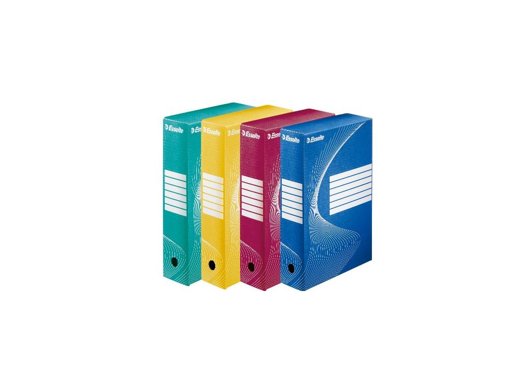 Archivačné krabice vo farebnom vyhotovení slúžia na ukladanie dokumentov do formátu A4. Rozmery: 35,5x25x100 mm.Dodatočné parametre