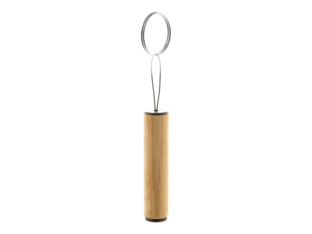 Bambusová mini baterka s 1 LED a kovovým krúžkom na kľúče. S gombíkovou batériou.Dodatočné parametre