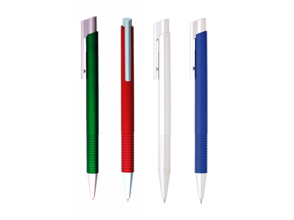 Modrá, plastová propiska se stříbrnými doplňky.Dodatočné parametre
