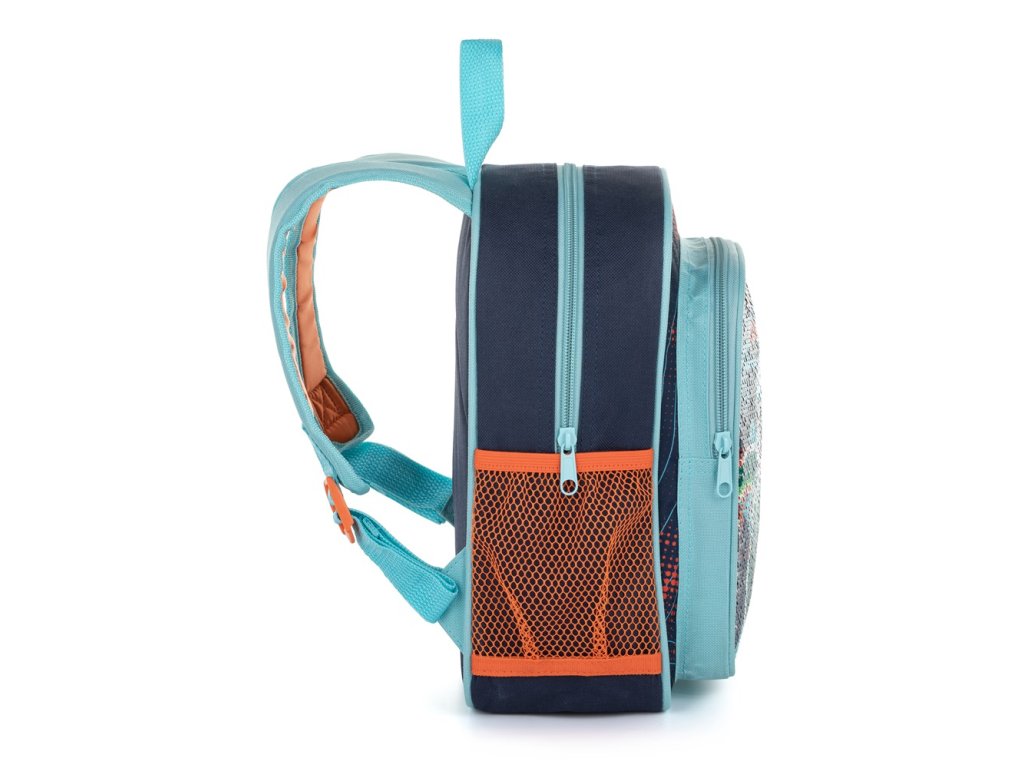 Menší batôžtek vhodný pre deti predškolského veku na voľnočasové aktivity.Má jedno veľké vrecko, menšie vrecko na desiatu a postranné vrecká na fľašu na pitie.