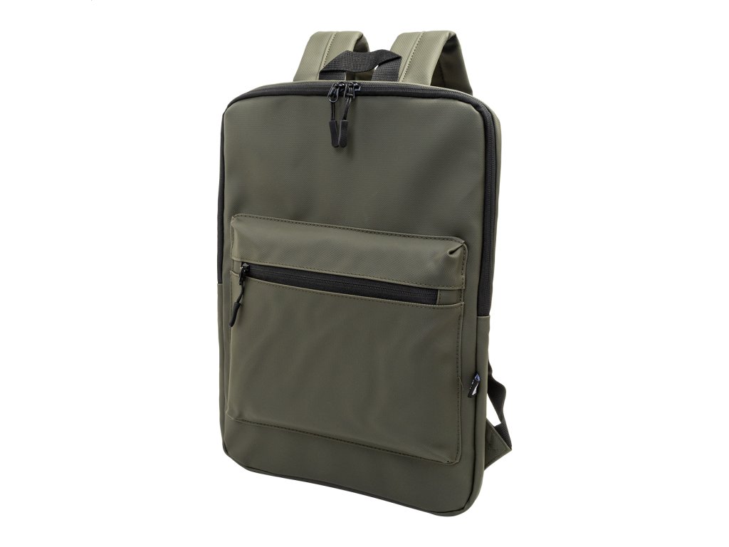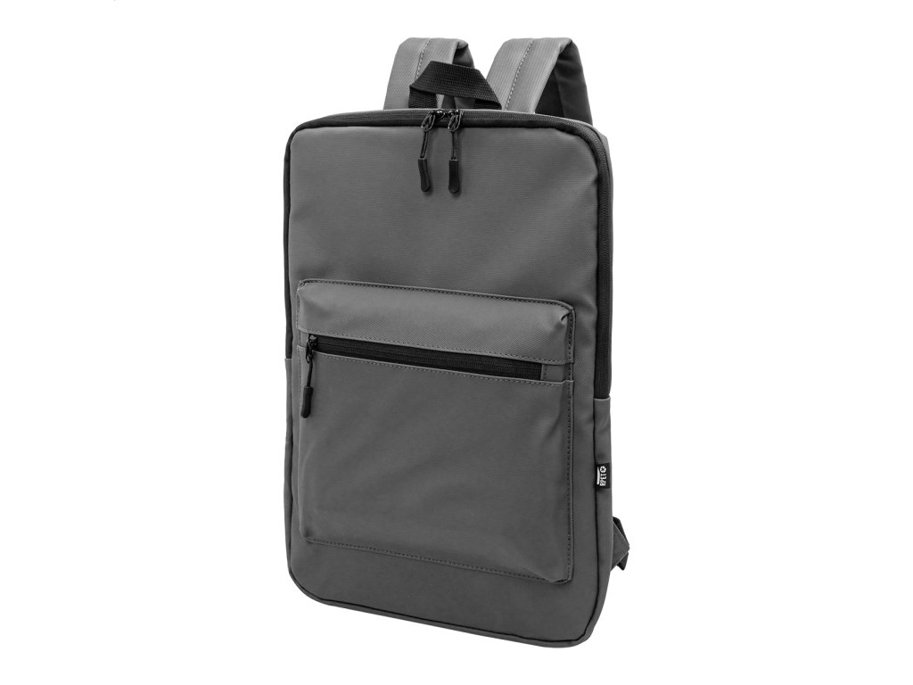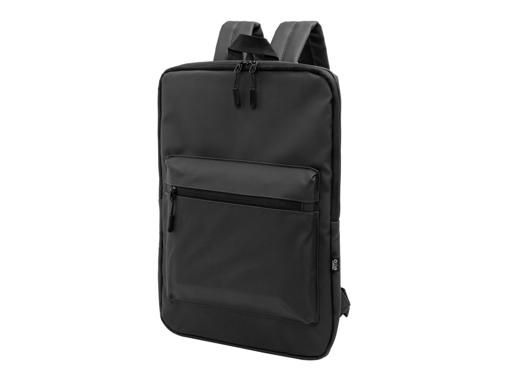 Vodotesný tenký batoh na notebook RPET s priehradkou na notebook (15") na zips a predným vreckom na zips. S polstrovaným chrbtom a ramennými popruhmi. Polyester 600D RPET potiahnutý PU, s výrazným štítkom RPET.Dodatočné parametre
