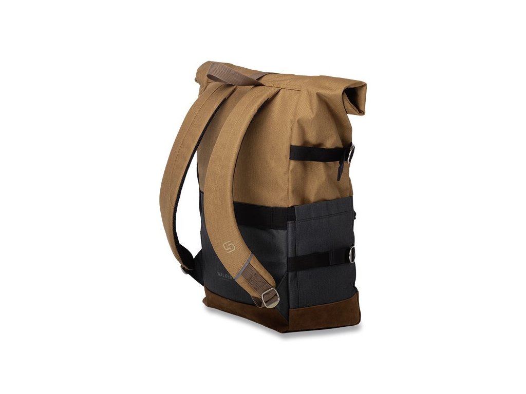 spodná časť batohu potiahnutá materiálom vo vzhľade brúsenej kože, v hnedej farbe, odolným proti nečistotám