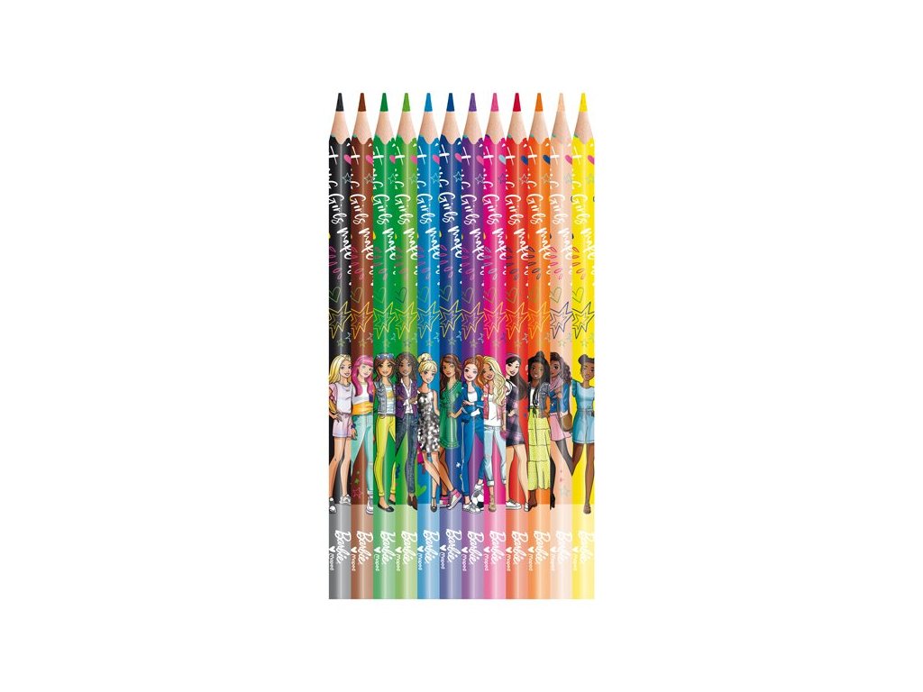 Na každej pastelke je iná postava bábiky Barbie.