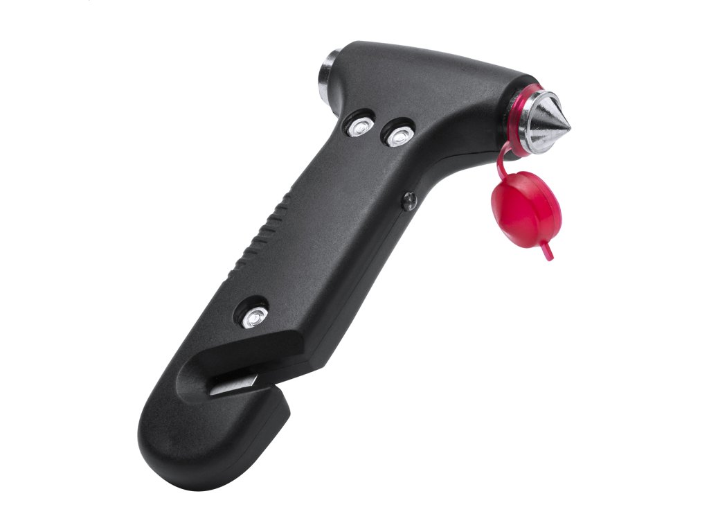 Multifunkčné bezpečnostné kladivko s rezačom pásov a 1 LED svetlom, dodávané s gombíkovými batériami.Dodatočné parametre