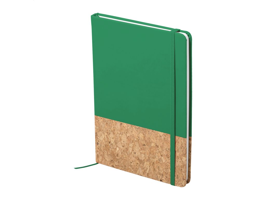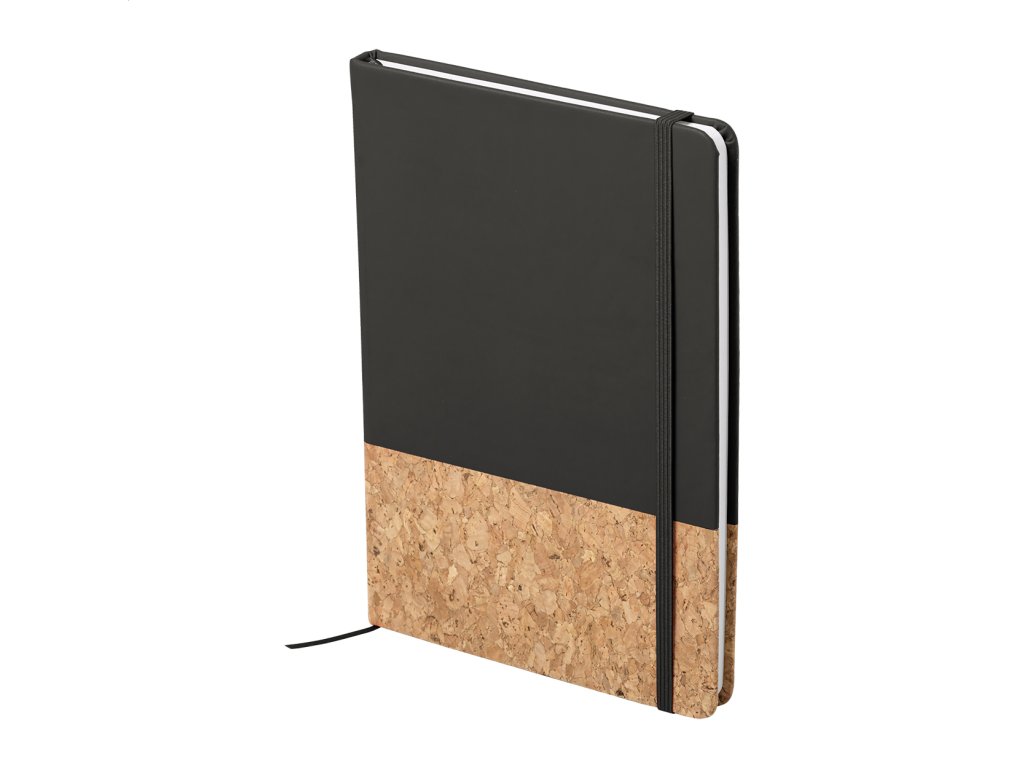 Blok A5 s doskami z prírodného korku a PU kože, s gumičkou a 98 čistými listami.