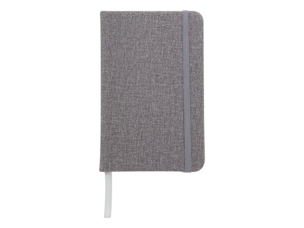 Blok A6 s doskami zo štrukturovanej PU kože, s gumičkou a 80 listovým linajkovým blokom.