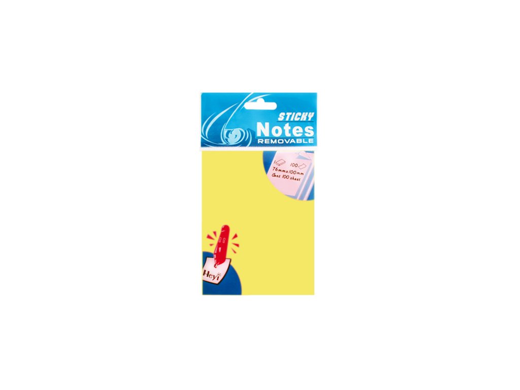 Papierové samolepiace bločky v sýto žltej farbe v bloku, rozmer 76 x 100 mm, lepidlo umožňuje opakované použitie lístkov, pričom nezanecháva stopy, blok obsahuje 100 samolepiacich lístkov.Dodatočné parametre