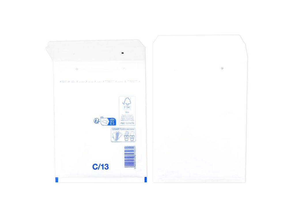 Extrémne ľahké, bezpečné a hospodárne obálky. Jednoduchý spôsob balenia samolepiacim uzáverom. Vďaka špeciálnej fólii s vankúšikmi, plnenými vzduchom a papieru Kraft, potiahnutému polyetylénom, sú obálky elastické a odolné voči roztrhnutiu a vode. Farba biela. Vnútorný rozmer 15 x 21,5 cm.Kód : C13