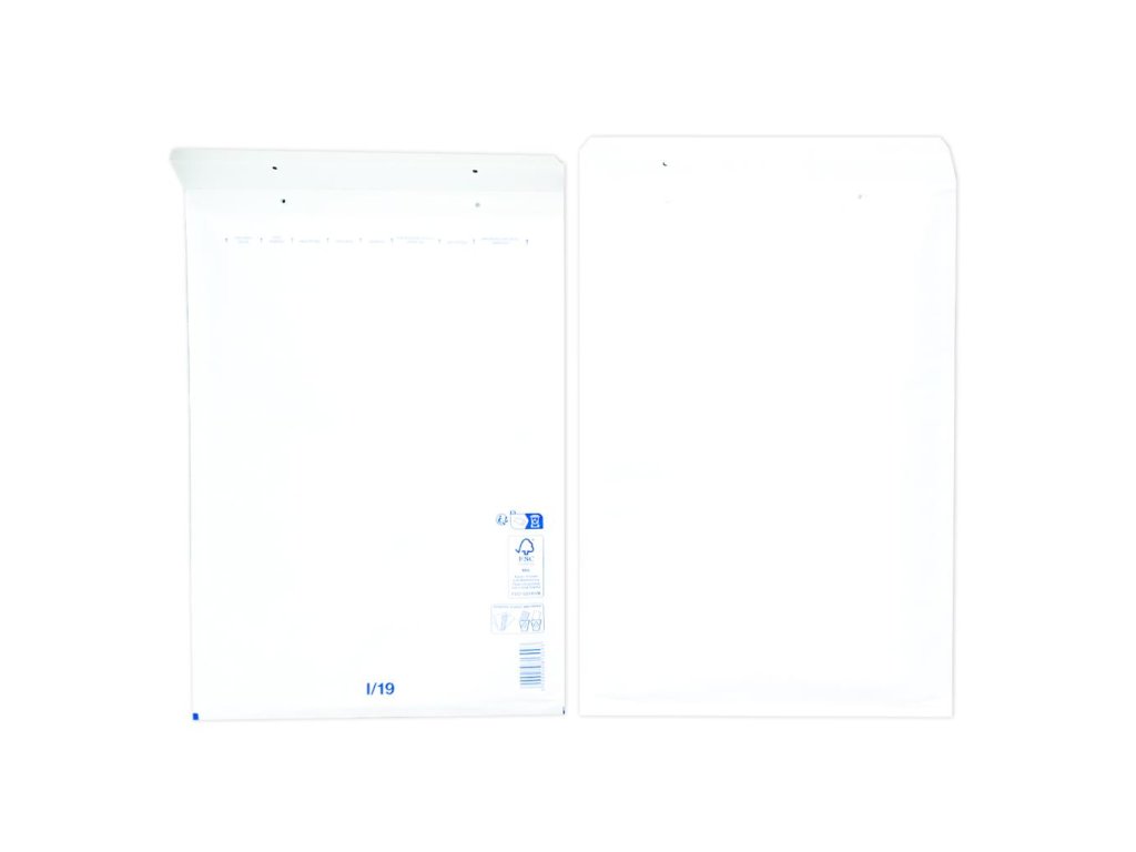 Extrémne ľahké, bezpečné a hospodárne obálky. Jednoduchý spôsob balenia samolepiacim uzáverom. Vďaka špeciálnej fólii s vankúšikmi, plnenými vzduchom a papieru Kraft, potiahnutému polyetylénom, sú obálky elastické a odolné voči roztrhnutiu a vode. Farba biela. Vnútorný rozmer 30 x 44,5 cm.Kód :I19