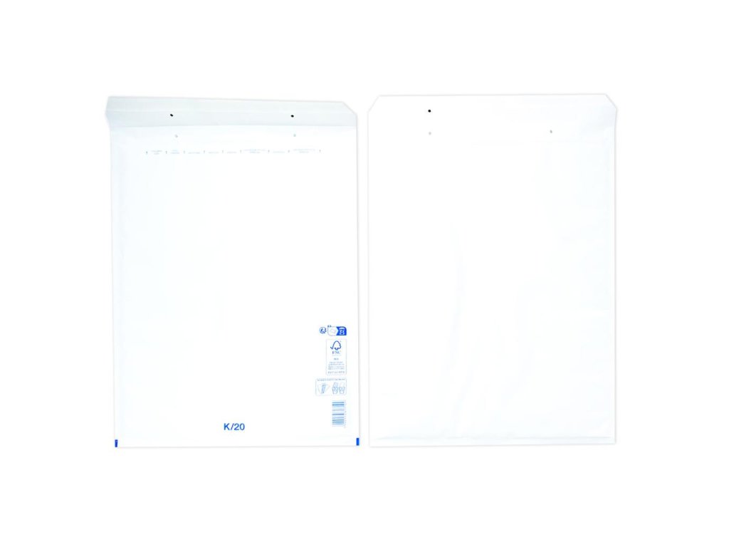 Extrémne ľahké, bezpečné a hospodárne obálky. Jednoduchý spôsob balenia samolepiacim uzáverom. Vďaka špeciálnej fólii s vankúšikmi, plnenými vzduchom a papieru Kraft, potiahnutému polyetylénom, sú obálky elastické a odolné voči roztrhnutiu a vode. Farba biela. Vnútorný rozmer 34 x 48 cm.Kód : K20