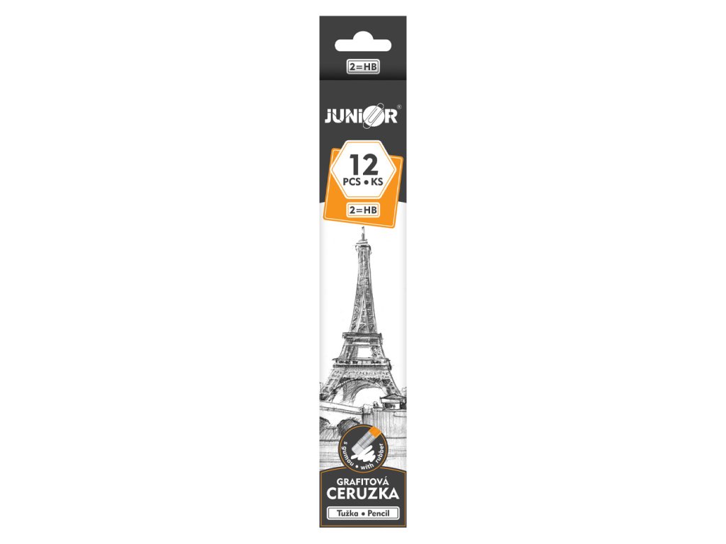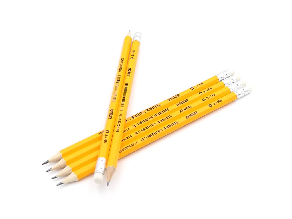 Grafitová ceruzka v tvrdosti HB, telo ceruzky z dreva štandardnej kvality, s gumou na vymazávanie.