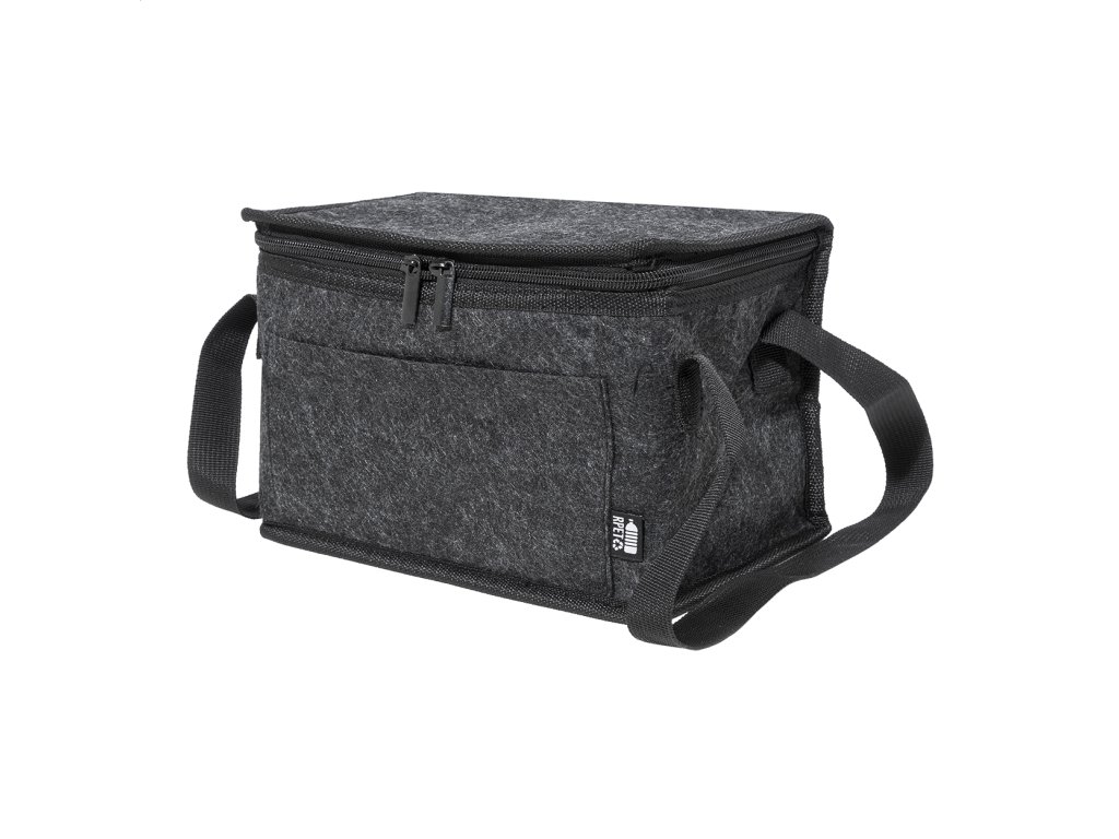Chladiaca taška na zips z RPET plsti s hliníkovým polstrovaním, predným vreckom a bočnými rukoväťami. S výrazným štítkom RPET.Dodatočné parametre