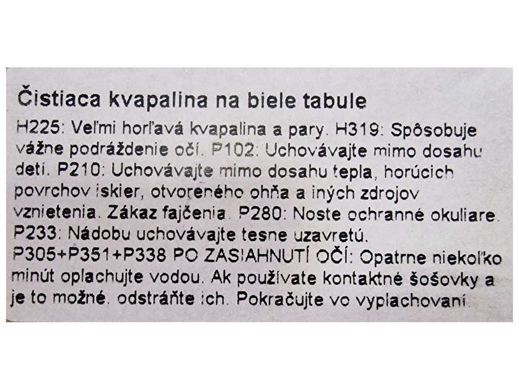 Čistiaca kvapalina na stierateľné tabule v rozprašovači. Navlhčite textíliu alebo vystreknite kvapalinu priamo na tabuľu a tabuľu utrite.Dodatočné parametre