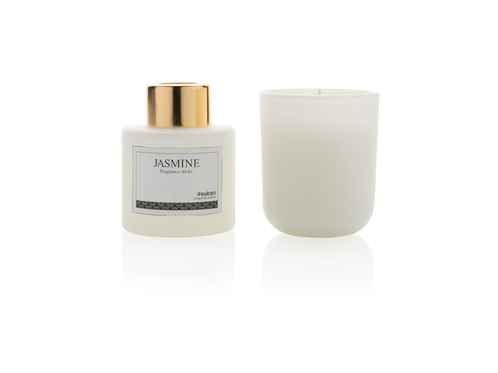 Darčeková sada vonných tyčiniek a sviečky so sójovým voskom. Príjemná jazmínová vôňa na navodenie uvoľnenej atmosféry a pocit relaxu. Doba horenia sviečky: 10 hodín, čistá váha 55 g. Balené v kraftovej darčekovej krabičke.Dodatočné parametre