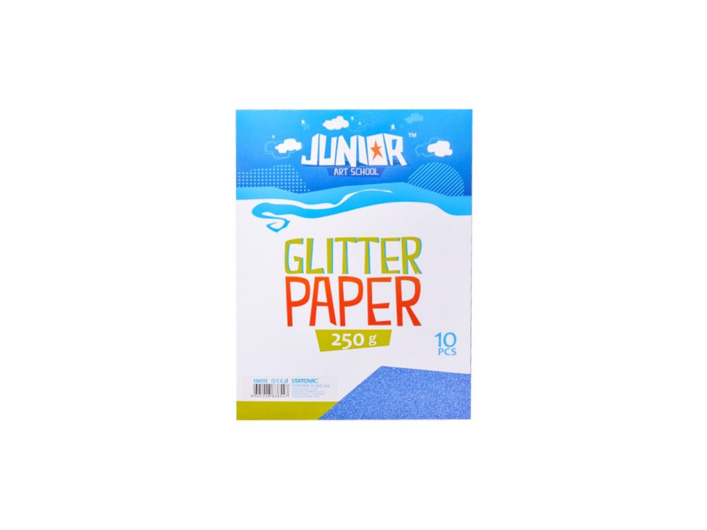 Dekoračný papier pre kreatívne tvorenie. Formát A4 / 250 g. Sada obsahuje 10 ks. Farba: Glitter modrý.Dodatočné parametre