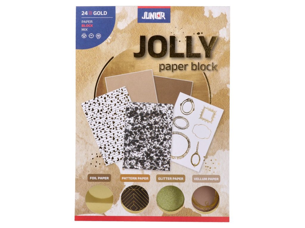 Dekoračný papier má všestranné využitie v škole, aranžérstve, pri výtvarných prácach a pod. (zlatá farba / formát A5).