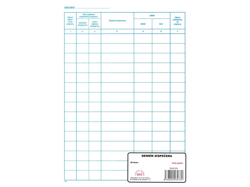 Tlačivo : Denník dispečera formát A4, obsahuje 50 listov.Dodatočné parametre