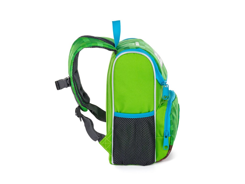 Obsahuje jednu veľkú priehradku, menšiu priehradku na desiatu a na boku má kapsičku na fľašu s vodou.