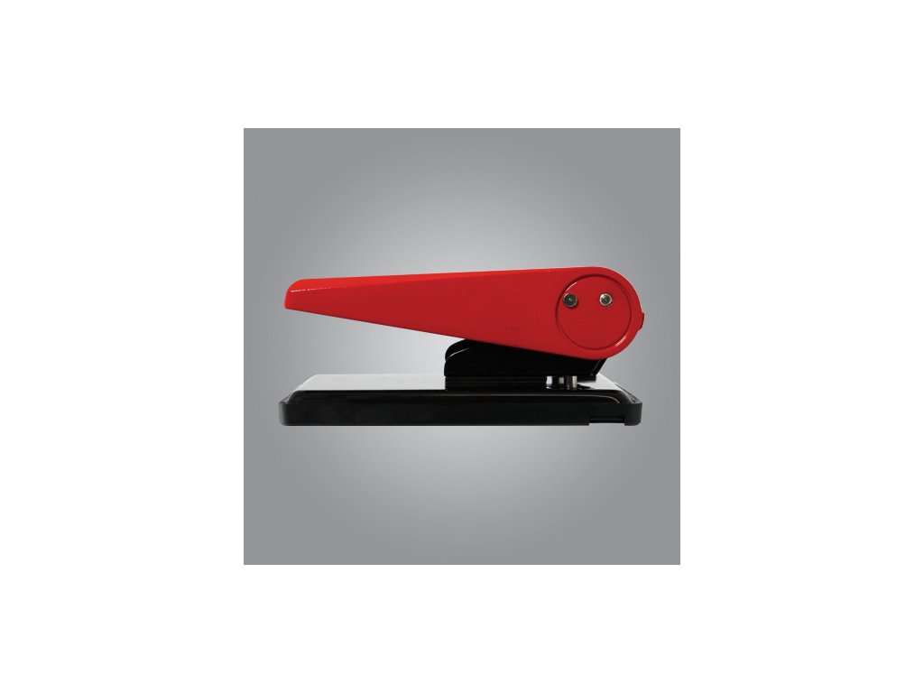 Kancelársky dierovač s posuvným pravítkom, materiál kov v kombinácii s plastom, rozpätie dier 7-8 cm, kapacita dierovania 50 listov. Priemer diery 6 cm.Dodatočné parametre