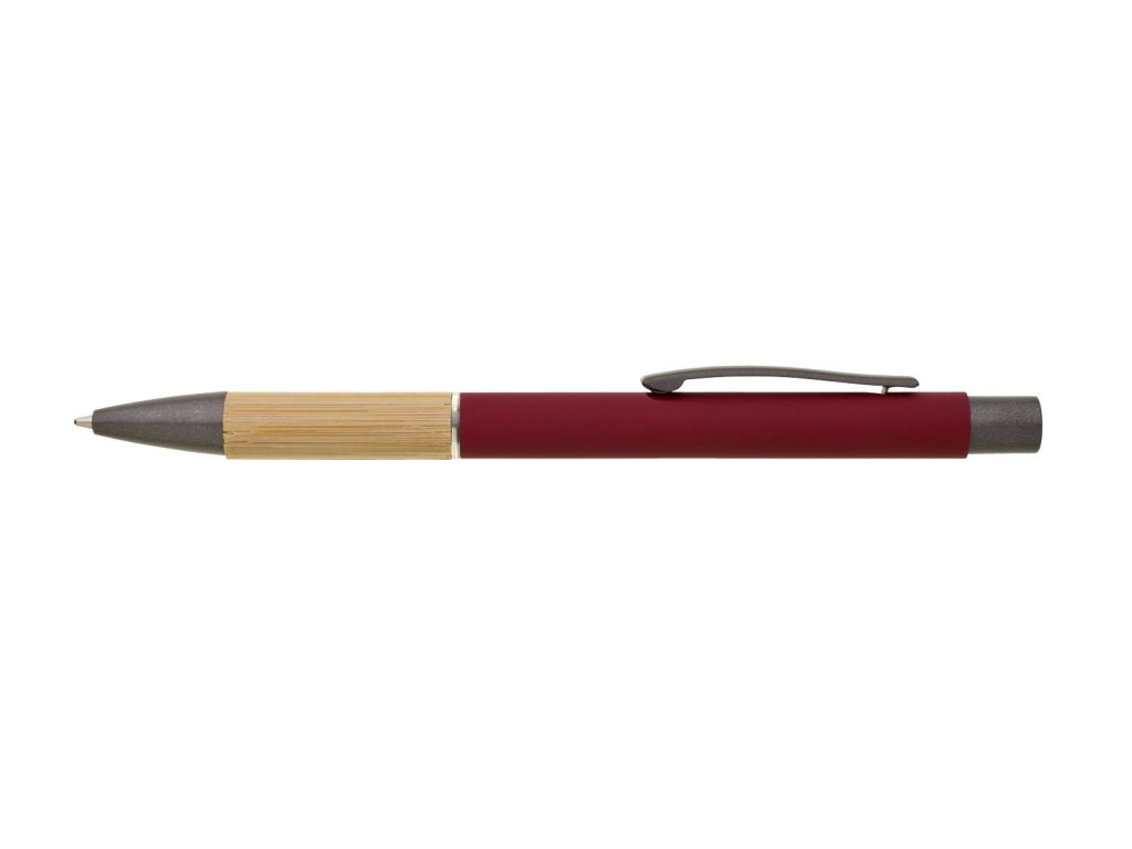 Kovové pero v červenej farbe s hnedo-čiernymi doplnkami, pogumovaným povrchom a bambusovým úchopom. Modrá náplň VO. Kolekcia SAVE THE NATURE.Dodatočné parametre