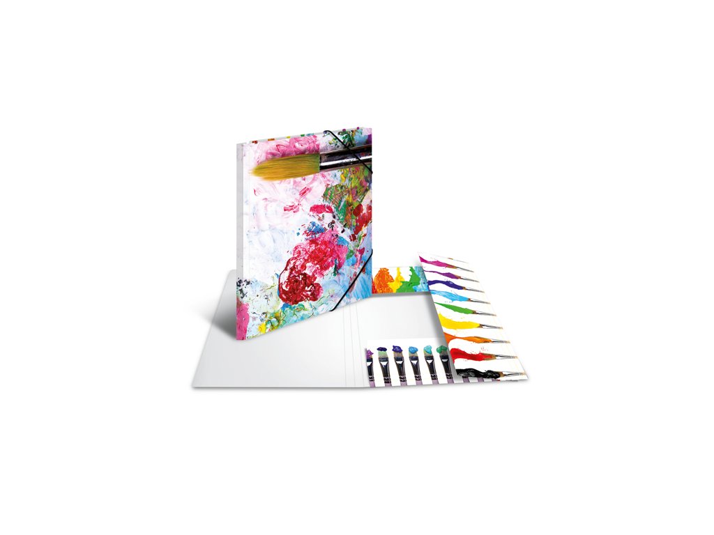 Doska s gumičkou s motívom farieb vhodná na uskladnenie dokumentov, výkresov, učebníc či zošitov, ktoré vďaka pevnému telu dosky budú chránené pred poškodením.Dodatočné parametre