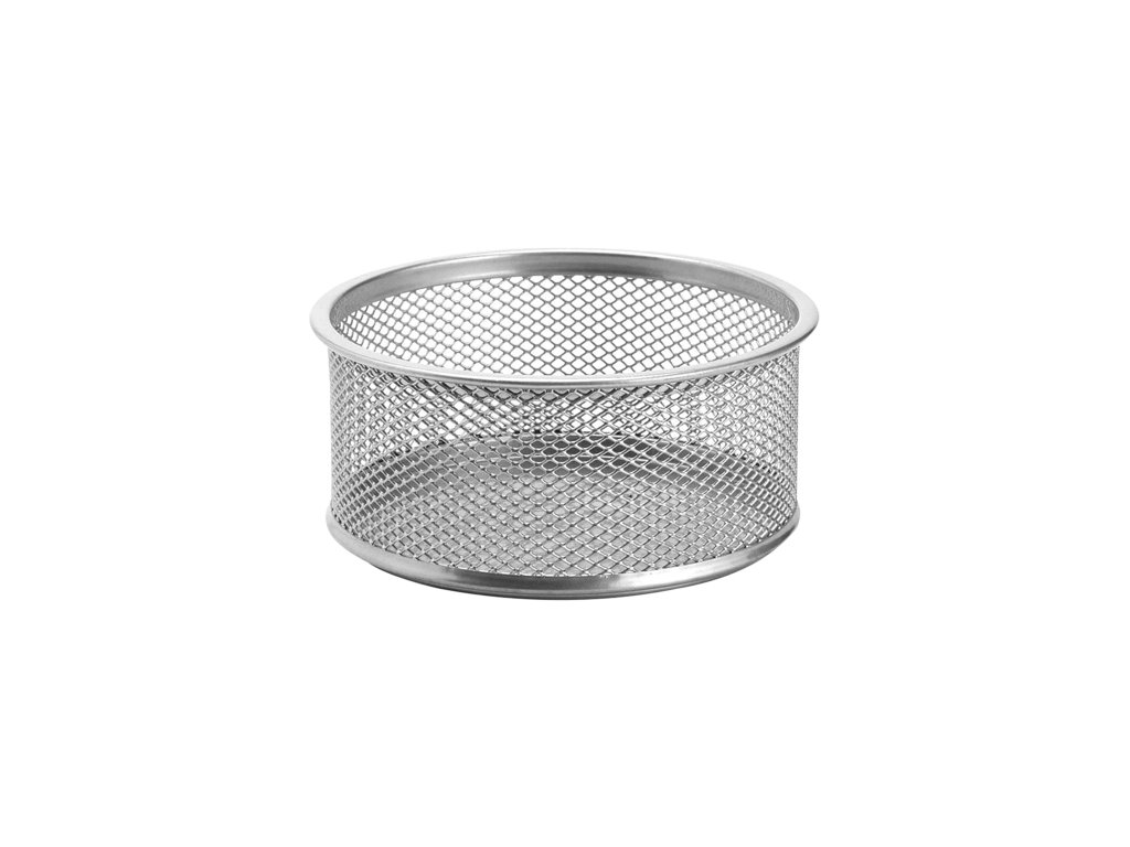 Drôtený pohár na kancelárske spony a ostatné malé doplnky - strieborný. Praktický a jednoduchý doplnok každého písacieho stola či kancelárie. Rozmery: 89x33 mm.Dodatočné parametre