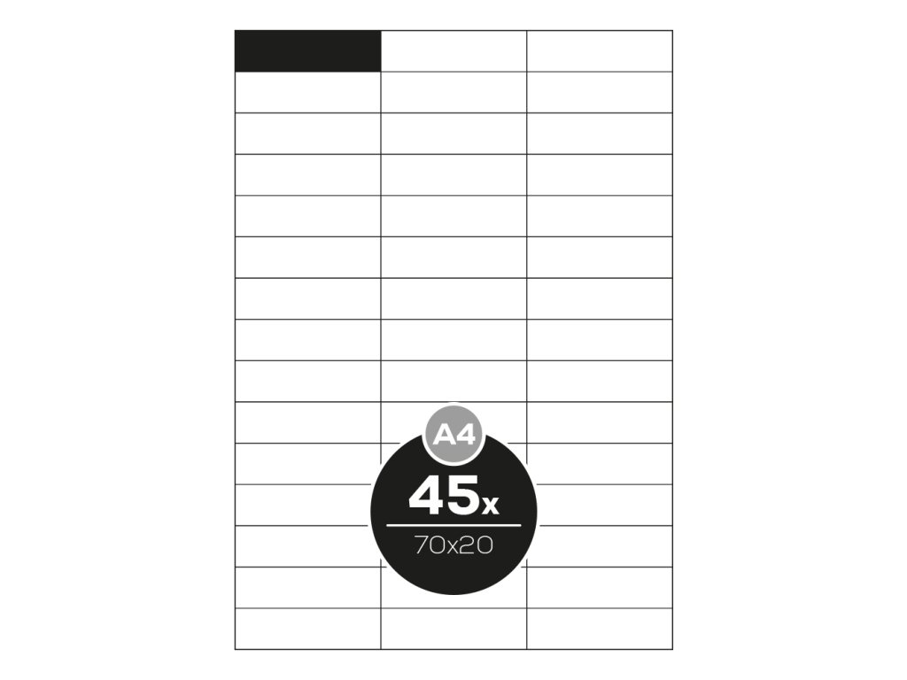 Etikety PRINT A4/100 ks, 70x20 - 45 etikiet, biele