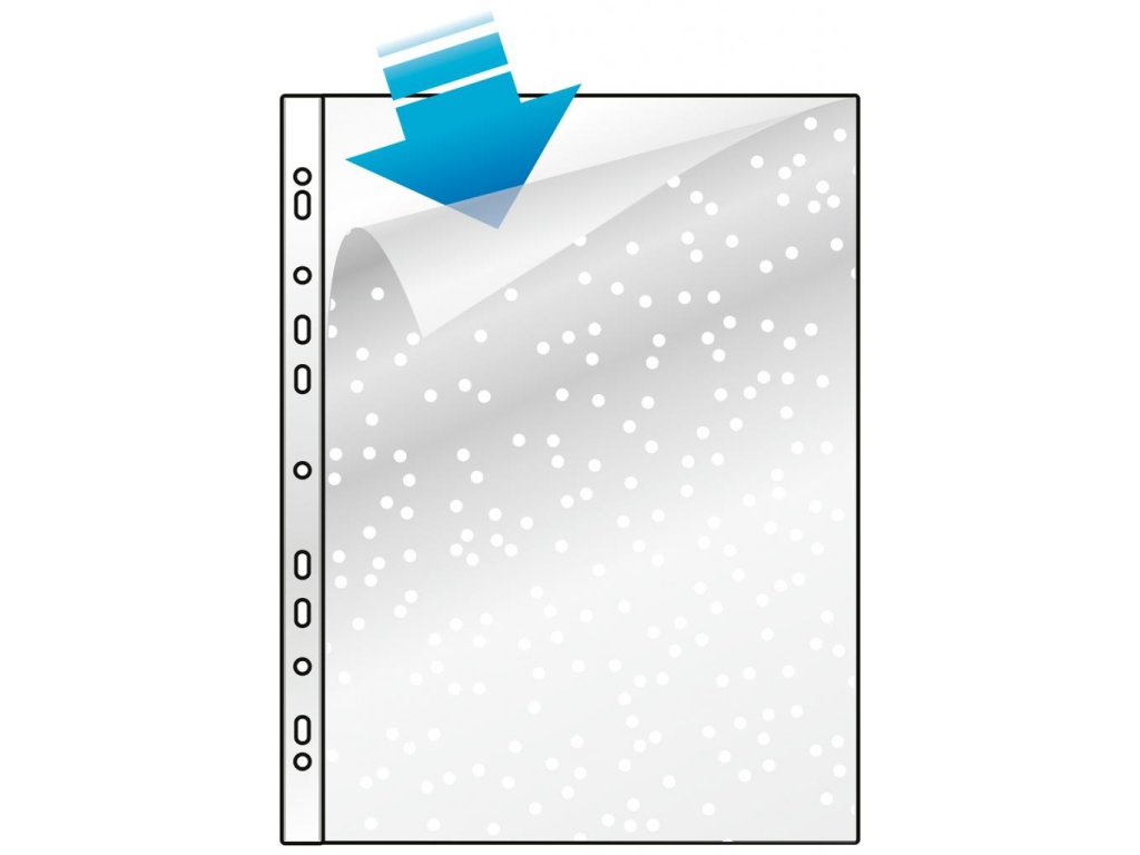 Priehľadný matný obal s eurodierovaním otvorený zhora a z bočnej strany. Formát A4. Hrúbka 50 mic. Balenie 100 ks.Dodatočné parametre