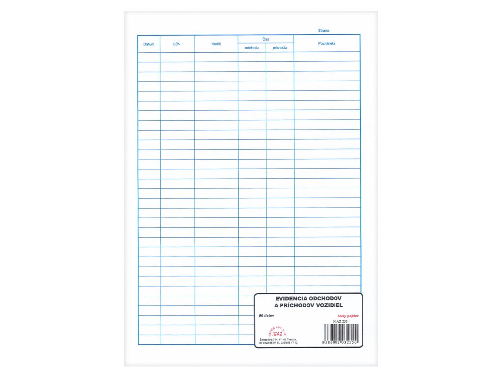 Evidencia odchodov a príchodov vozidiel A4, 50 listov (255)
