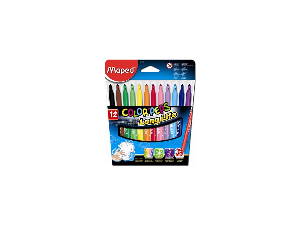 Farebné fixy , ľahko vyprateľný a zmývateľný atrament. Hrot odolný proti zatlačeniu či poškodeniu, žiarivé farby. Trojhranný tvar pre lepšie a pohodlnejšie uchopenie. Dlhá životnosť. Šírka stopy 3,6 mm. Stredne hrubý hrot vhodný na kreslenie a maľovanie. Balenie obsahuje 12 ks. Francúzka značka MAPED zaručuje vysokú kvalitu, funkčnosť a moderný dizajn.Dodatočné parametre