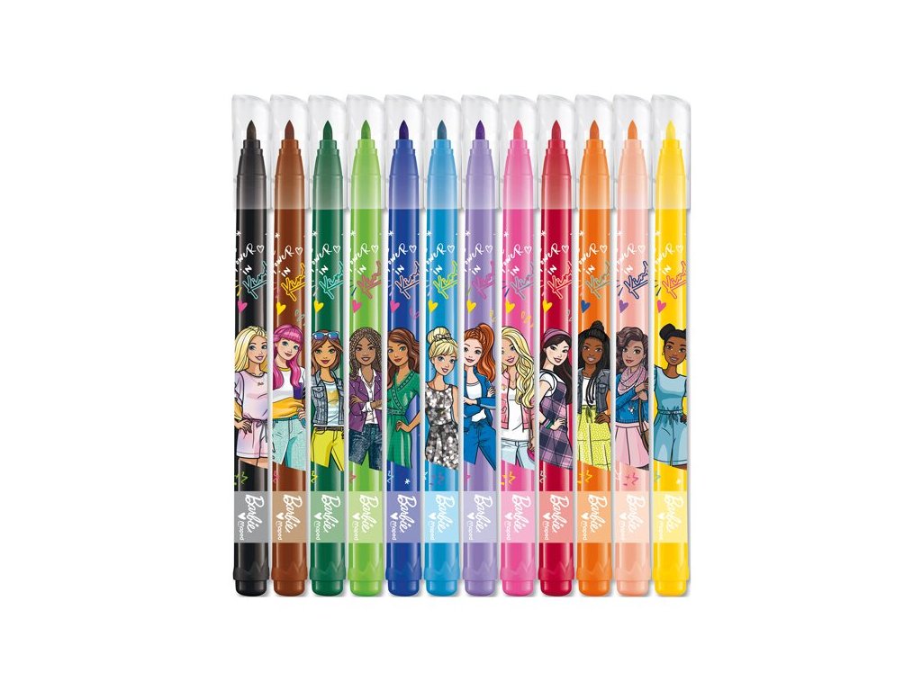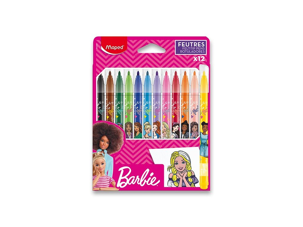 Súprava 12 farebných fixiek Maped Barbie sa ľahko vyprateľným a umývateľným atramentom.