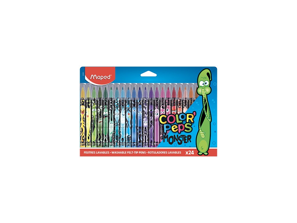 Súprava 24 farieb farebných fixiek s motívmi príšeriek. Fixky majú odolný hrot a ľahko vyprateľný a umývateľný atrament.Dodatočné parametre