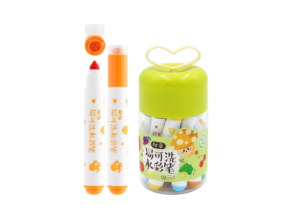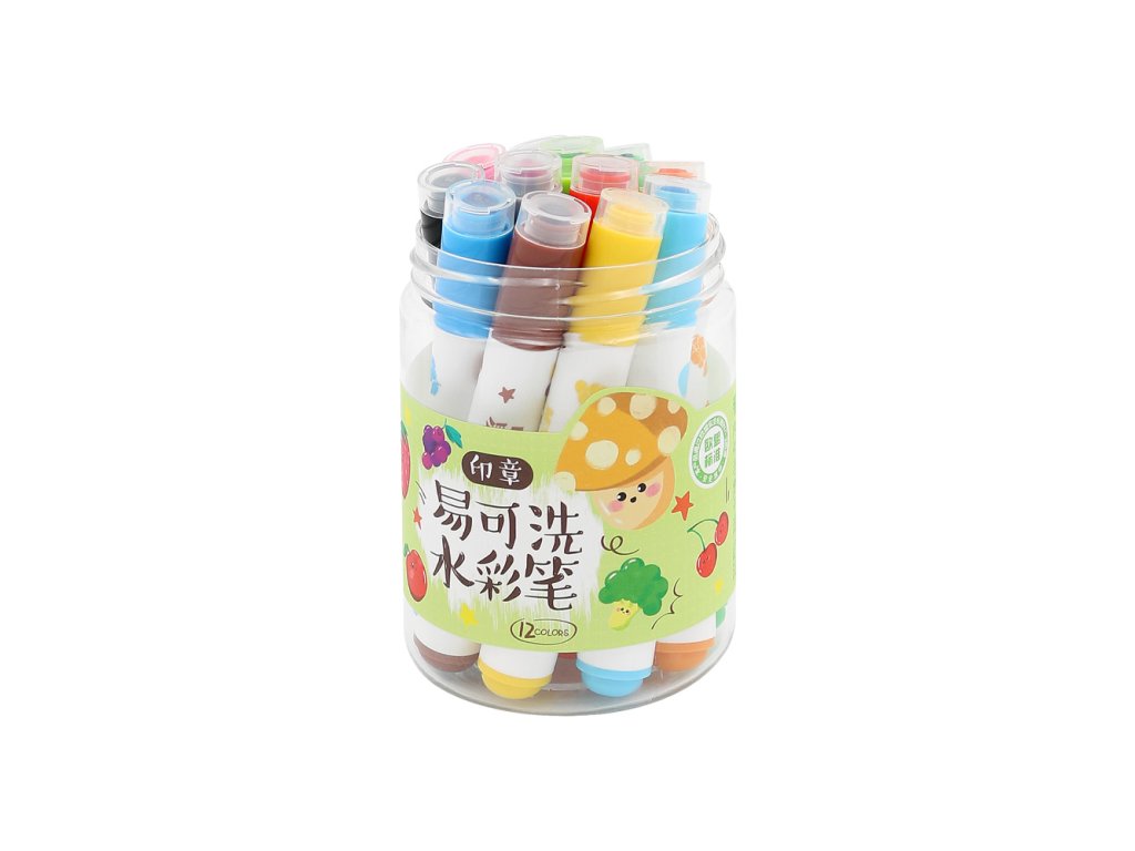 Detské fixy s pečiatkou umiestnenou vo vrchnáku s motívami ovocia.