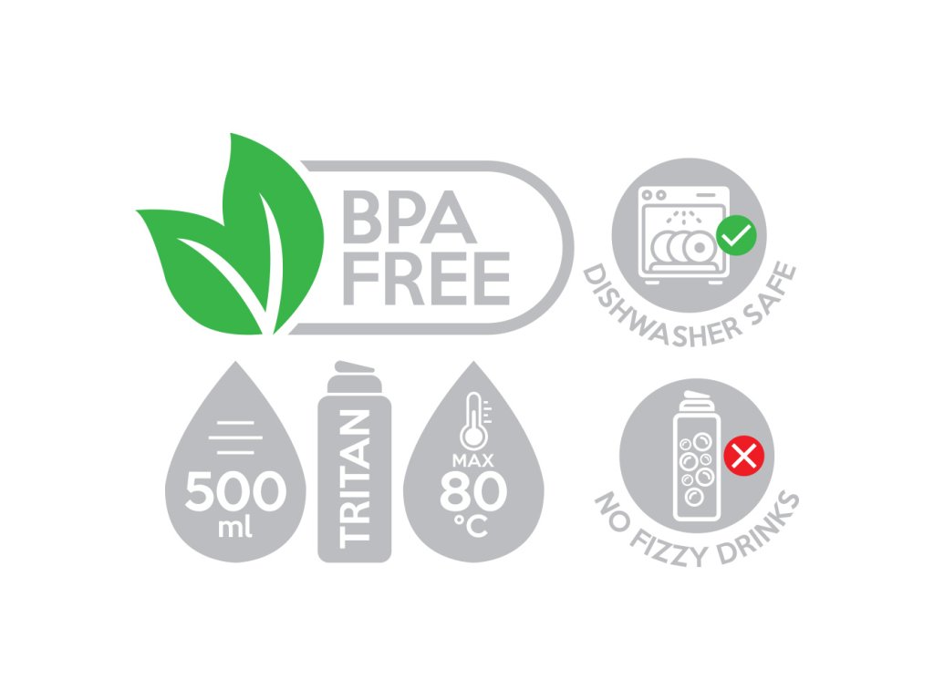 Plastová tritanová fľaša na pitie je vyrobená z kvalitného, zdravotne nezávadného materiálu - testovaná, neobsahuje BPA ani ftaláty.