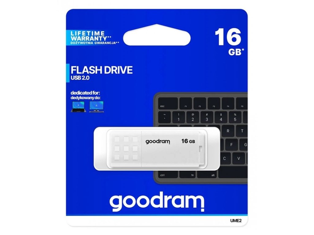 Goodram USB flash disk, USB 2.0, 16GB, biely, UME2-0160W0R11, USB A, s krytkou