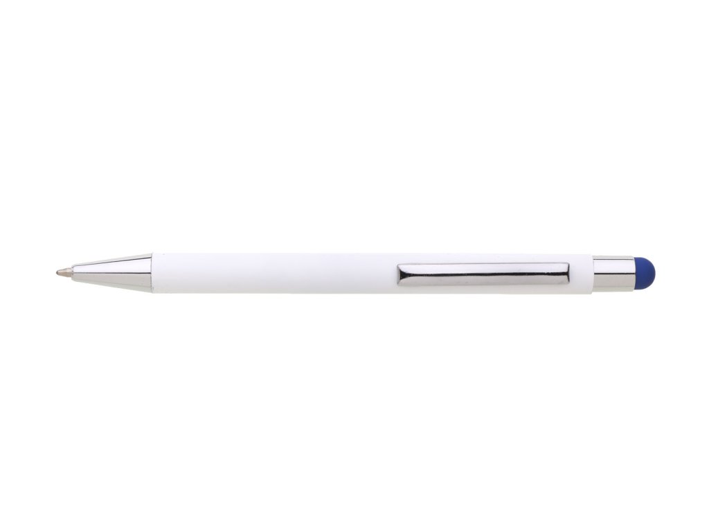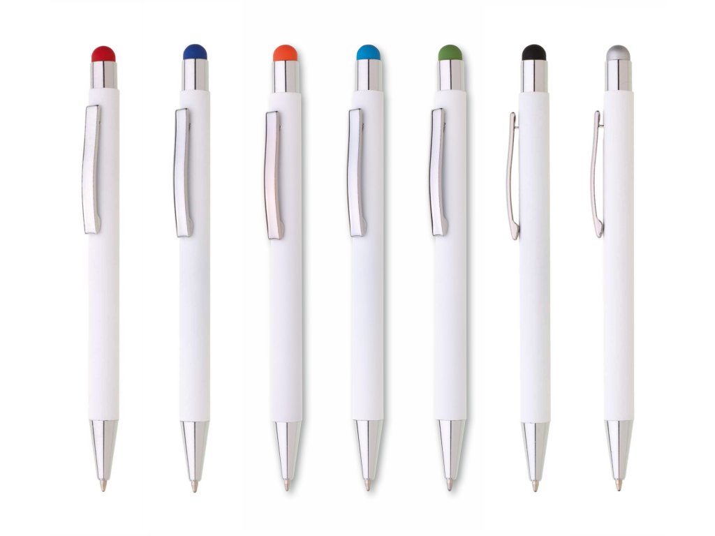 Kovové guľôčkové pero GRATTA SOFT so soft povrchom a farebným hrotom pre ovládanie dotykovej obrazovky. Na bielom tele krásne vynikne výsledný efekt laseru vo farbe dotykového hrotu (magic laser). Modrá náplň velkoobjemová.Dodatočné parametre