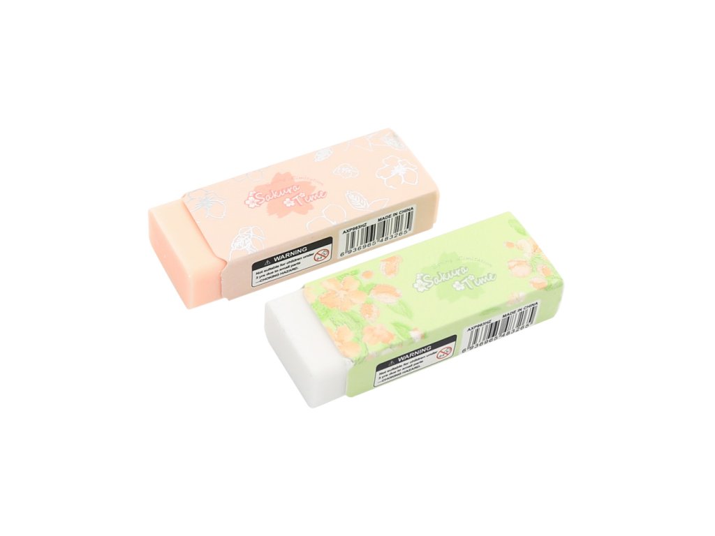 Bezprašná, mäkká guma vhodná pre grafitové ceruzky a pastelky (2 farby v balení) jarná kolekcia Sakura.