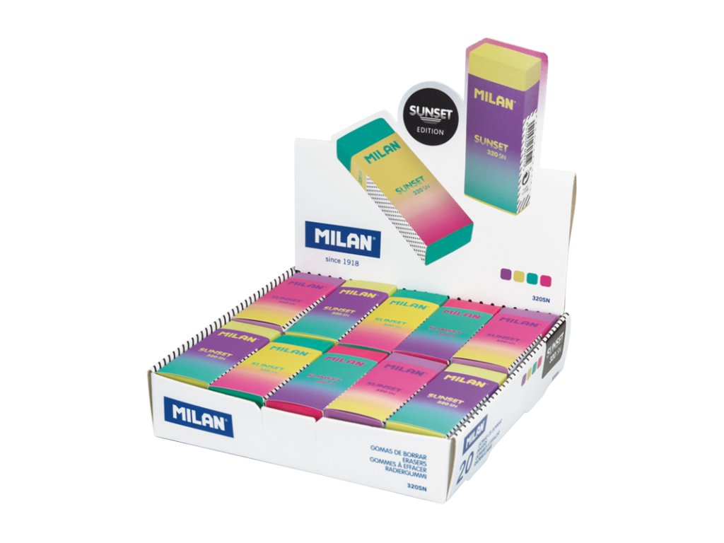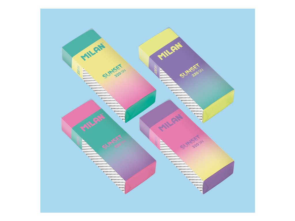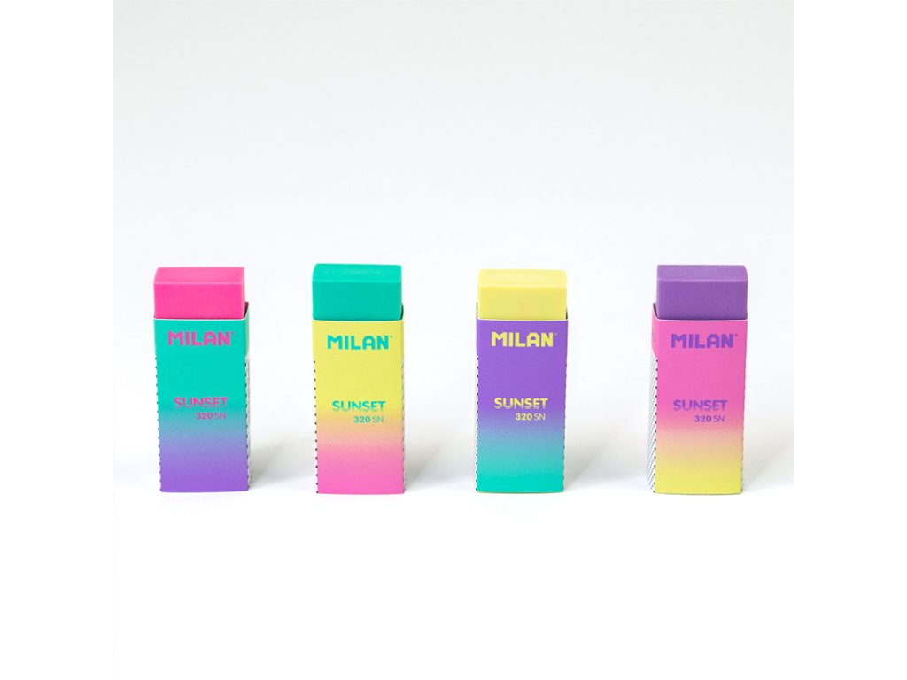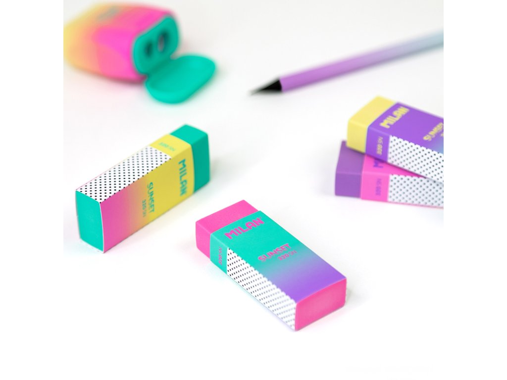 Guma Nata z kolekcie Sunset v 4 rôznych farbách: žltá, fialová, ružová a zelená. Materiál: univerzálny, mäkký, neabrazívny kaučuk. Vhodná pre všetky typy povrchov. Nepoškodzuje papier.Dodatočné parametre