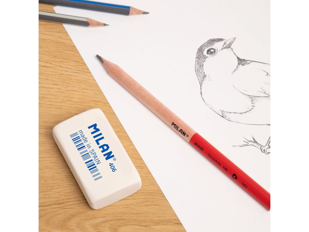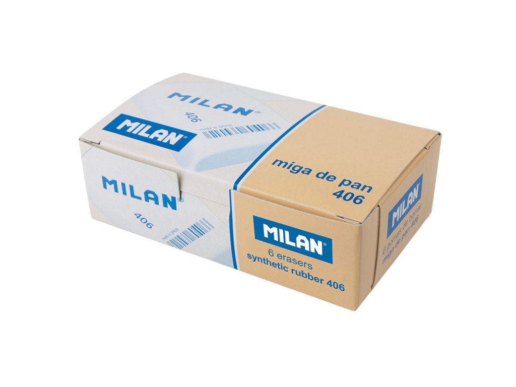 Pružná guma MILAN 406 je zo syntetického kaučuku. Môže byť použitá na vymazanie širokej škály ťahov grafitovej ceruzky zo všetkých druhov papiera.Dodatočné parametre