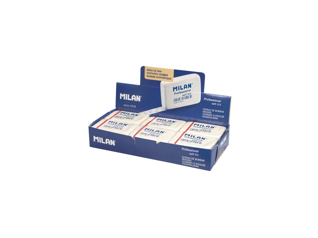 Guma MILAN Profesional soft 412 je určená na mäkký syntetický kaučuk. Môže byť použitá na mazanie širokej škály grafitových ťahov ceruzkou zo všetkých druhov papiera. Biela farba.Dodatočné parametre