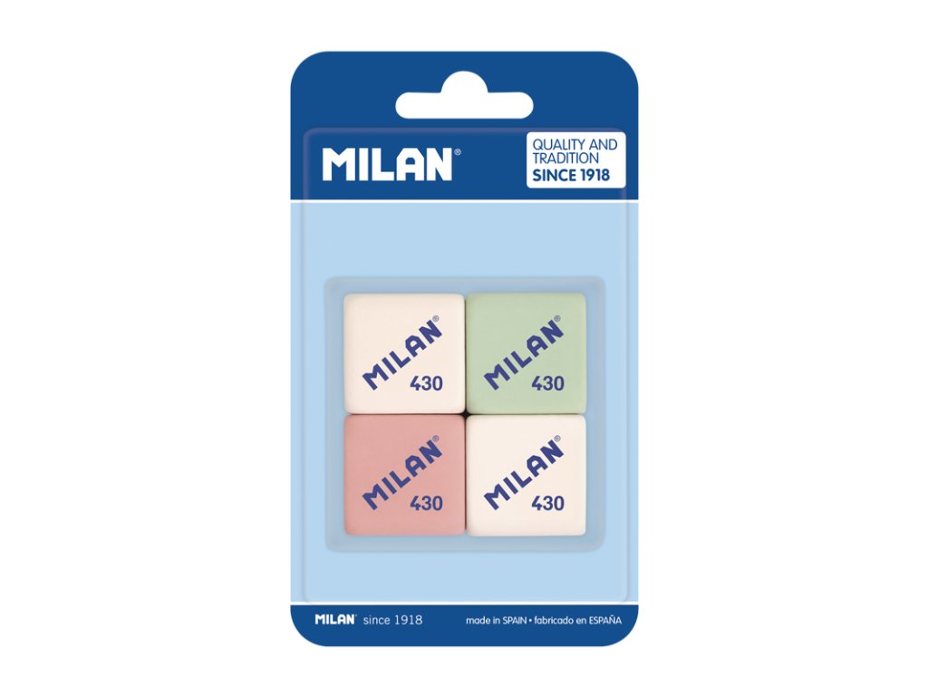 Sada náhradných gúm MILAN 430. Štvorcová guma z mäkkej syntetickej gumy. Štvorcová guma z mäkkej syntetickej gumy. Rozmanité farby: biela, ružová, zelená. Veľkosť gumy: 2,8 x 2,8 x 1,3 cm. Náhradné gumy sú vhodné pre strúhadlá s gumou z kolekcie COMPACT.Dodatočné parametre