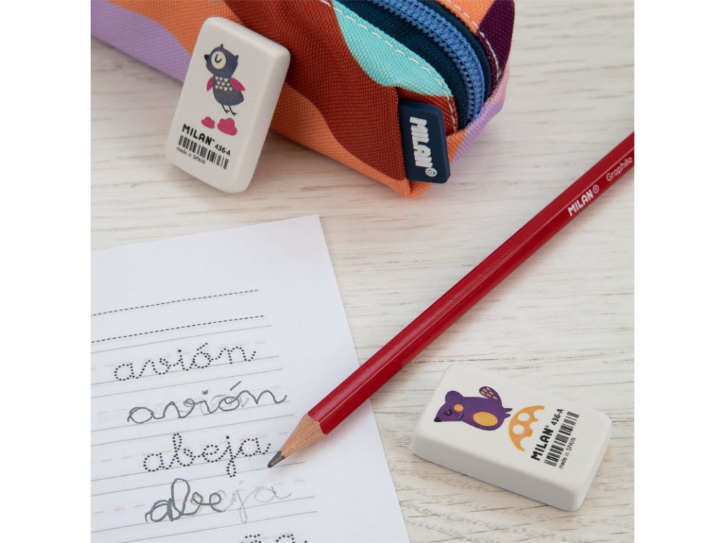 Pružná syntetická guma. Môže byť použitá na vymazanie širokej škály ťahov grafitovej ceruzky zo všetkých typov papiera. S rôznymi farebnými detskými vzormi.Dodatočné parametre