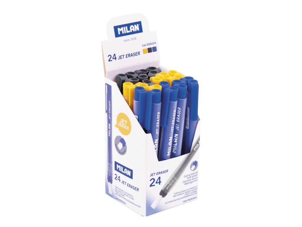 Automatický držiak gumy s plastovou rukoväťou. Guma je vhodná pre odstránenie grafitových stôp na všetkých druhov povrchov papiera. Dĺžka držiaka 124 cm, priemer 8 mm. Mix farieb.Dodatočné parametre