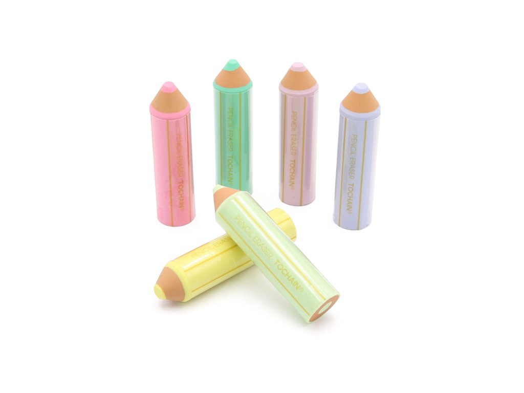 Mäkká guma v tvare pastelky s guľatým telom zaujme každého školáka (6 farieb).