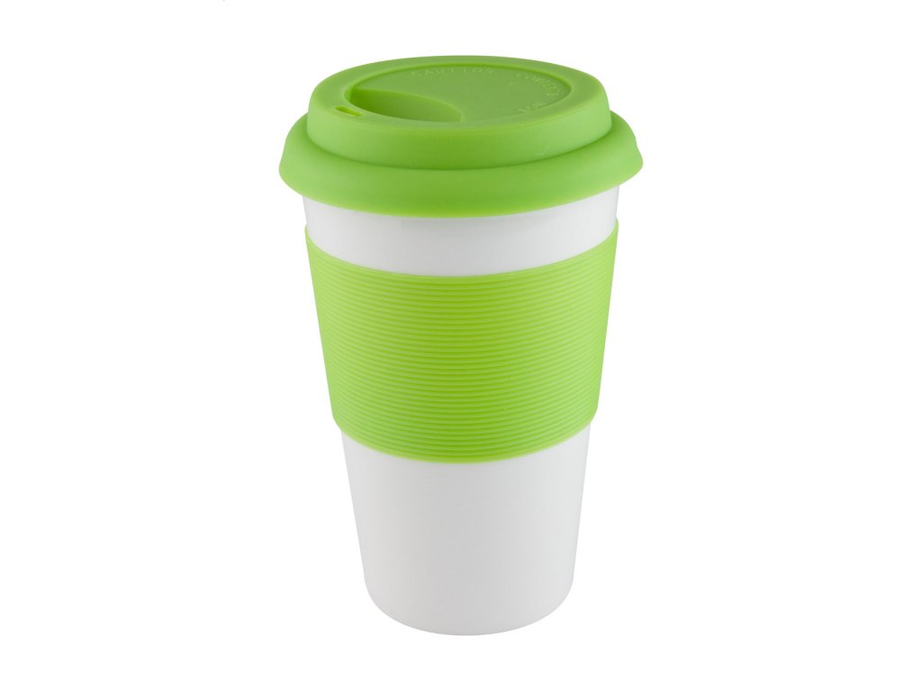 Keramický hrnček so silikónovým viečkom a úchopom, 400 ml.