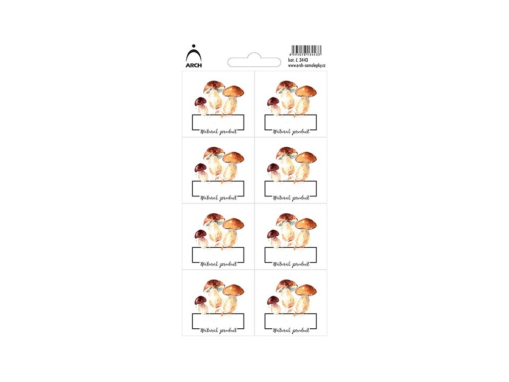 Huby "Natural product" - 8 vodeodolných etikiet